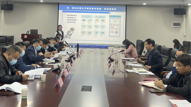 副院長(zhǎng)曹寶月對(duì)化材院期中教學(xué)自查情況作了專(zhuān)題匯報(bào),匯報(bào)結(jié)束后陪同檢查組分兩路開(kāi)展了期中教學(xué)過(guò)程材料和教學(xué)、科研實(shí)驗(yàn)室運(yùn)行管理的檢查。