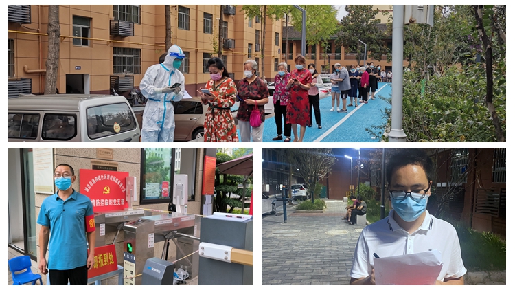 由于本次疫情發(fā)生在暑假期間,教師們尚未全部返校,還分散在不同的區(qū)域。但是,疫情就是命令,防控就是責(zé)任。無(wú)論身處何地,參與疫情防控志愿服務(wù)、助力早日清零就是學(xué)院教師的共同選擇。在商洛市商州區(qū)的嘉園國(guó)際小區(qū)、江南小區(qū)、廣電小區(qū),劉麥霞、武永耿、王英全、武曉婕、彭衛(wèi)麗等老師積極協(xié)助工作人員開(kāi)展核酸檢測(cè)、門禁值班、信息登記等工作,魏軍虎老師更是夫妻齊上陣,參與碧桂園小區(qū)疫情防控志愿服務(wù)。在校內(nèi),劉敦俊、侯德鋒兩位老師自覺(jué)參與志愿者服務(wù)隊(duì),為家屬院教職工配送米面、蔬菜等生活物資,路遠(yuǎn)、王貝貝、葉肖等教師積極協(xié)助校內(nèi)師生員工開(kāi)展核酸檢測(cè)、信息采集等工作;青年教師劉健身兼數(shù)職,先后在丹鳳縣龍駒寨鎮(zhèn)西關(guān)社區(qū)開(kāi)展卡點(diǎn)出入登記、敲門入戶摸排核酸檢測(cè)人員數(shù)量、宣傳防疫政策、為群眾發(fā)放通行證等多項(xiàng)工作。安梅老師雖然遠(yuǎn)在新疆伊犁,依然不忘共產(chǎn)黨員的初心使命,主動(dòng)參與為小區(qū)住戶配送生活物資的志愿服務(wù)活動(dòng)。