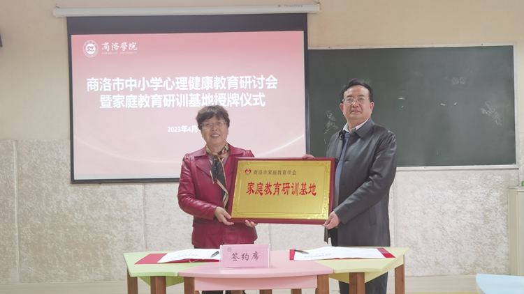 為貫徹落實(shí)黨的二十大精神,深入實(shí)施健康中國戰(zhàn)略,深化校地合作力度,加快推進(jìn)健康商洛建設(shè),4月4日下午,健康管理學(xué)院組織舉辦商洛市中小學(xué)心理健康教育研討會(huì)暨家庭教育研訓(xùn)基地授牌儀式。商洛市家庭教育學(xué)會(huì)會(huì)長朱才寶,學(xué)會(huì)副會(huì)長王康敏、明秀蘭,學(xué)會(huì)副秘書長徐聲智、孫景山出席會(huì)議。商洛中學(xué)、商洛市初級(jí)中學(xué)、商州秦韻小學(xué)等中小學(xué)校領(lǐng)導(dǎo)、專家,健康管理學(xué)院全體黨政領(lǐng)導(dǎo)、學(xué)生工作相關(guān)人員及心理學(xué)系全體教師參加本次活動(dòng)。