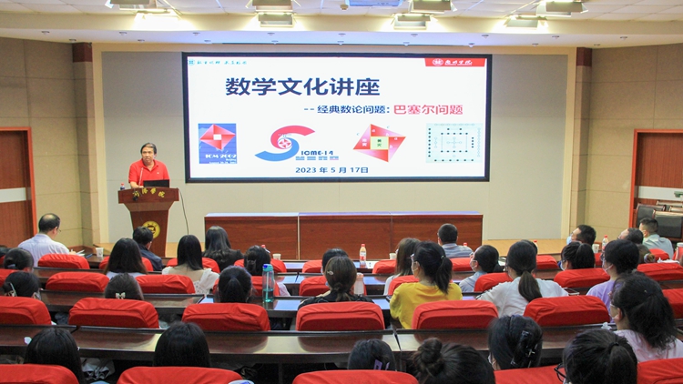 報(bào)告會(huì)上,劉國(guó)棟教授結(jié)合2022年國(guó)際數(shù)學(xué)家大會(huì)logo和2021年國(guó)際數(shù)學(xué)教育大會(huì)logo設(shè)計(jì),介紹了會(huì)議logo中蘊(yùn)含的數(shù)學(xué)符號(hào)、數(shù)學(xué)文化。劉教授以淵博的數(shù)學(xué)文化知識(shí)、多年的教育教學(xué)研究與實(shí)踐經(jīng)驗(yàn)、飽滿(mǎn)的師德情懷、生動(dòng)的案例、風(fēng)趣的比喻,從“巴塞爾問(wèn)題、數(shù)學(xué)家歐拉、城市與數(shù)學(xué)”三個(gè)方面,為學(xué)院師生闡述了巴塞爾問(wèn)題蘊(yùn)含的數(shù)學(xué)思想、歐拉畢其一生的數(shù)學(xué)追求以及城市圖案中所包含的數(shù)學(xué)含義,展現(xiàn)了數(shù)學(xué)問(wèn)題中數(shù)學(xué)家“永不言倦”的科學(xué)家精神。