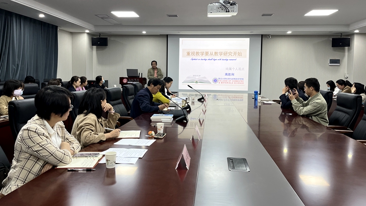 高勝利教授結(jié)合自身豐富的教學(xué)研究經(jīng)驗(yàn),分享了編寫《化學(xué)元素周期表》《非金屬同素異形體綜論》和《無機(jī)化學(xué)探究式教學(xué)叢書》的案例,指導(dǎo)在場教師如何做好教學(xué)研究、提升教學(xué)能力,以教學(xué)成效培養(yǎng)一流應(yīng)用型人才。他以潤物細(xì)無聲的教育方式引導(dǎo)大家堅(jiān)持對教學(xué)工作保持矢志不渝的熱愛,具備強(qiáng)烈的社會(huì)責(zé)任感,切實(shí)做到不忘初心、牢記使命。