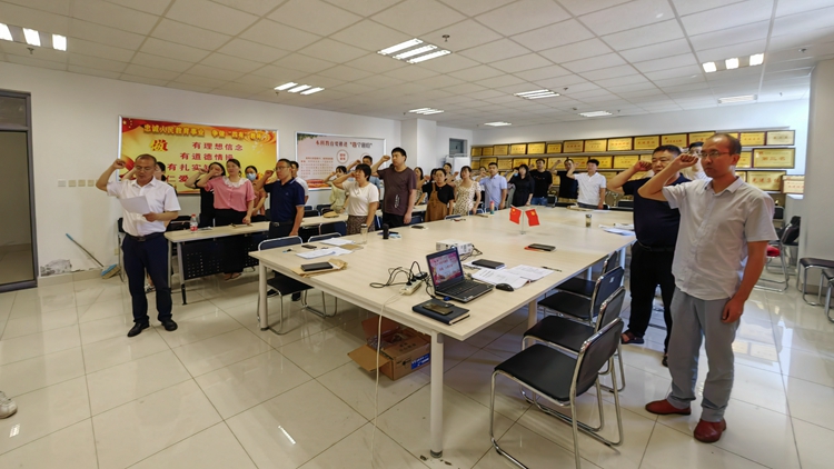 面對著鮮紅的黨旗,全體黨員舉起右臂,鏗鏘有力地進(jìn)行宣誓——“我志愿加入中國共產(chǎn)黨,擁護(hù)黨的綱領(lǐng),遵守黨的章程,履行黨員義務(wù)……”,通過宣誓儀式,黨員們又一次重溫了入黨時立下的錚錚誓言,心中澎湃萬千,紛紛表示要永遠(yuǎn)忠誠于黨,努力學(xué)習(xí),認(rèn)真工作,永遠(yuǎn)跟黨走,將畢生年華奉獻(xiàn)于黨。