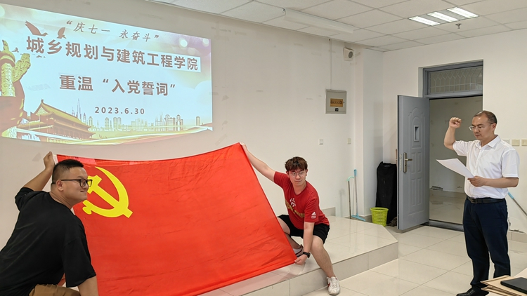 篳路藍(lán)縷創(chuàng)偉業(yè),不忘初心再啟航。為熱烈慶祝中國共產(chǎn)黨建黨102周年,推動學(xué)習(xí)貫徹習(xí)近平新時代中國特色社會主義思想主題教育走深走實,“七一”前夕,城鄉(xiāng)規(guī)劃與建筑工程學(xué)院黨委舉行“重溫入黨誓詞”“學(xué)黨章”“領(lǐng)導(dǎo)班子講黨課”“開展主題黨日活動”“我為黨的生日送祝?!钡认盗袘c“七一”活動。