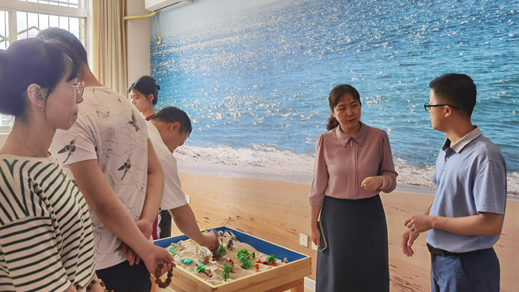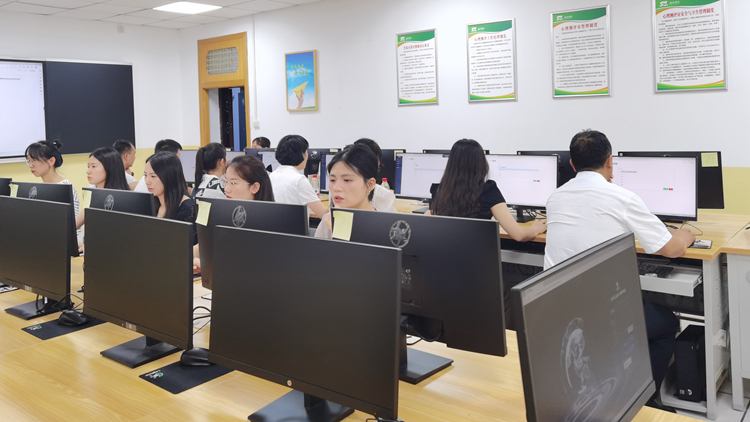 姚馨一行實(shí)地考察了我校省級(jí)心理健康教育中心,參觀了解了健康學(xué)院市級(jí)智慧心理研究與服務(wù)中心建設(shè)情況。在專業(yè)老師的指導(dǎo)下,體驗(yàn)了認(rèn)知神經(jīng)心理實(shí)驗(yàn)室、師范技能實(shí)訓(xùn)室相關(guān)心理訓(xùn)練器材設(shè)備,部分陪同人員還完成了首次“心理體檢”。