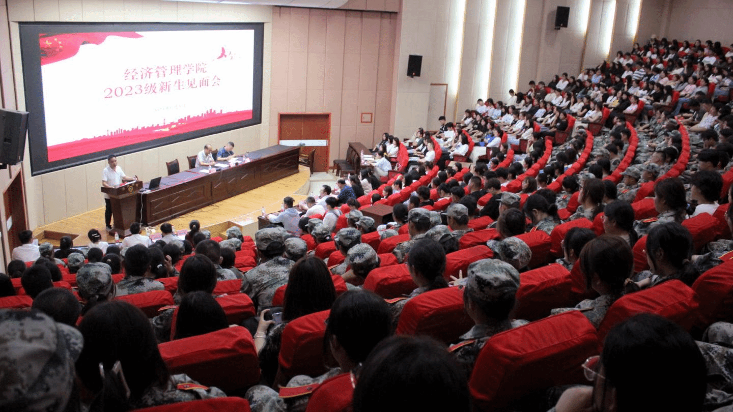 為使2023級全體新生對經(jīng)濟管理學(xué)院有更全面的了解,幫助新生更快地融入校園生活,在新生軍訓(xùn)結(jié)束之際,經(jīng)濟管理學(xué)院在圖書館二樓報告廳舉行2023級新生見面會。學(xué)院黨政領(lǐng)導(dǎo)班子、科級以上干部、各系(部)主任,全體輔導(dǎo)員以及2023級430余名新生參會。見面會由學(xué)院黨委書記高擴昌主持。