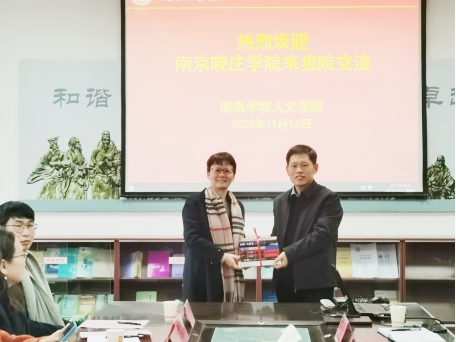 張文諾對張謙芬一行表示熱烈的歡迎。張謙芬、張文諾分別介紹了曉莊學院文學院、我校人文學院基本情況、專業(yè)建設(shè)、教學科研及服務(wù)地方等相關(guān)情況。雙方均表示下一步要進一步加強交流,深入開展教學、科研等方面合作。