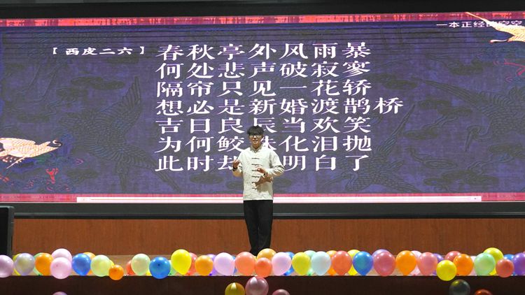 活動(dòng)在漢服社的《風(fēng)雅頌》拉開帷幕。天風(fēng)詩(shī)社的朗誦《尋李白》、鳴龍雙截棍社團(tuán)的《棍動(dòng)山河》、武術(shù)協(xié)會(huì)的《武耀青春》、大藝團(tuán)的《在你的身邊》《默》《Always online》、相聲小品協(xié)會(huì)的《你睡了沒(méi)》和《好學(xué)生與壞學(xué)生》等豐富多彩的節(jié)目輪番上臺(tái),以多樣式、深內(nèi)涵、精表演的文藝表現(xiàn)形式,為現(xiàn)場(chǎng)觀眾呈現(xiàn)了一場(chǎng)精彩紛呈的視聽盛宴。