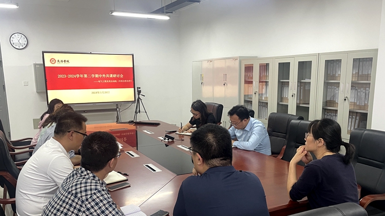 5月20日下午,電信學(xué)院在丹江校區(qū)召開2023-2024學(xué)年第二學(xué)期中外共課研討會。電信學(xué)院院長袁訓(xùn)鋒,副院長李亞文,外事秘書劉雅雯,外籍教師Shehab Salem以及全體共課教師參加會議。會議由電氣系主任張商州主持。