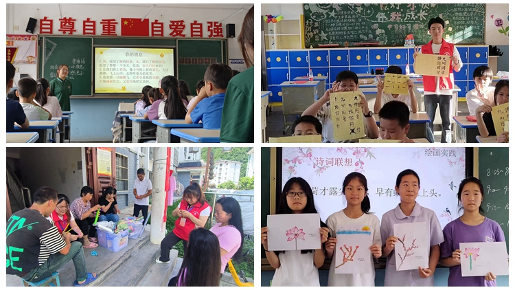 本次活動中,人文學(xué)院“領(lǐng)航青年宣講團(tuán)”圍繞普通話知識科普、親情陪伴、素質(zhì)拓展等主題精心設(shè)計(jì)了一系列豐富多彩的科教文體活動,通過趣味游戲、詩歌朗誦、書法訓(xùn)練、手工制作、舞蹈排演等形式,讓孩子們在輕松愉快的氛圍中收獲了知識、拓展了眼界,播下了夢想的種子?;顒又?,宣講團(tuán)還向米糧鎮(zhèn)中心小學(xué)和清泉村捐贈圖書400余冊,向參會群眾發(fā)放了由宣講團(tuán)精心設(shè)計(jì)的編織袋、手工折扇等禮品,并組織孩子們體驗(yàn)了漆扇的制作過程。