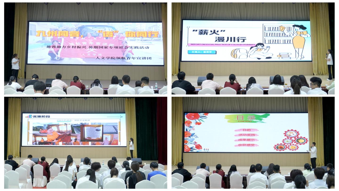 44支校級立項實踐團隊負責人通過圖文、現(xiàn)場講解、短視頻等方式,圍繞活動內容、活動方式、實踐成果、個人感悟等方面進行了精彩的匯報,充分體現(xiàn)了各團隊發(fā)揮專業(yè)特色,深入鄉(xiāng)村、扎根基層,在黨史教育、鄉(xiāng)村振興、文化傳承、社會服務、禁毒宣傳、普通話推廣、七彩假期等領域的青春風采和所感所獲,在領略祖國發(fā)展偉大成就、鄉(xiāng)村變革、惠民生暖民心舉措的生動對比中不斷增強學生的“聽黨話、跟黨走”的堅定信心。