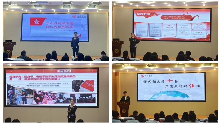 團(tuán)委書記王姍、教務(wù)處副處長王欣分別對(duì)初評(píng)對(duì)象的出色表現(xiàn)給予了充分肯定,結(jié)合各個(gè)初評(píng)對(duì)象的展示內(nèi)容進(jìn)行了點(diǎn)評(píng),并鼓勵(lì)大家要繼續(xù)發(fā)揮榜樣作用,激勵(lì)和帶動(dòng)更多同學(xué)不斷完善自我、勇于創(chuàng)新,努力成為更優(yōu)秀的自己。