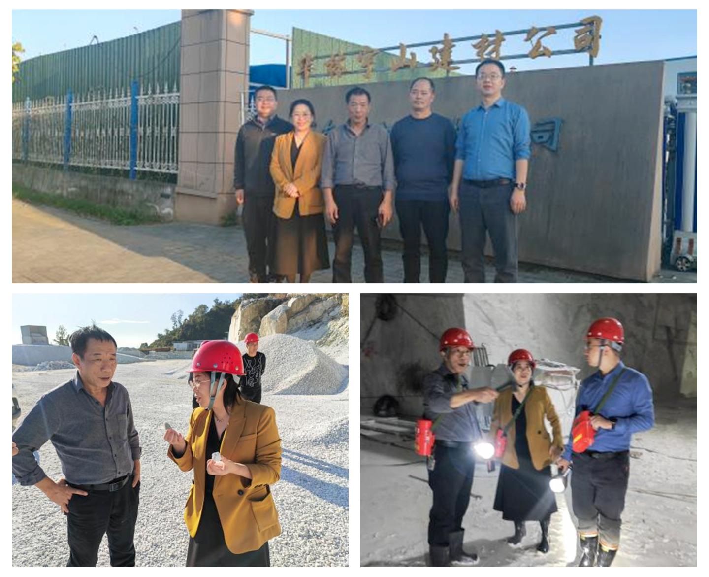 在商南縣華林宇山建材有限公司負(fù)責(zé)人余美雄、余美帥陪同下,服務(wù)團(tuán)隊(duì)深入生產(chǎn)一線,實(shí)地考察了公司礦石硐采施工現(xiàn)場(chǎng)、礦石破碎車間、礦石分選車間等,并參觀了企業(yè)產(chǎn)品展示室。