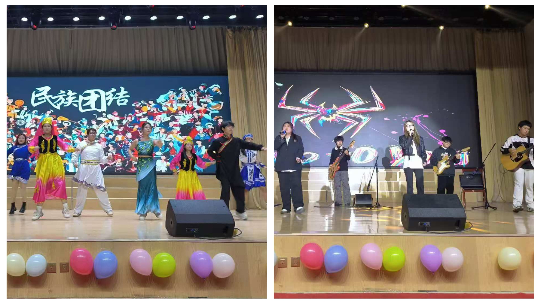 活動中,商洛學(xué)院校園廣播電臺選送的詩歌朗誦《我的祖國》,深情地表達(dá)了學(xué)子對祖國母親的眷戀;大學(xué)生藝術(shù)團(tuán)選送的歌曲《美麗中國》,以歌傳情,唱出了青年學(xué)子對祖國大好山河的贊美和對中華民族偉大復(fù)興的憧憬,為祖國母親獻(xiàn)上最誠摯的祝福;藏族舞蹈《納瓦吉瓦》以雄渾的氣勢展現(xiàn)了高原人民的豪邁;民族舞《相親相愛》,宛如一副流動的民族風(fēng)情長卷,以婀娜的舞步,細(xì)膩地訴說著各民族豐富的故事;清商漢服學(xué)社的《華韻夏章》,展現(xiàn)了中華傳統(tǒng)服飾文化的博大精深與獨特魅力;大藝團(tuán)合唱團(tuán)翻唱《稻香》,通過新穎的合唱方式,以蓬勃、青春的氣息感染了現(xiàn)場的觀眾,贏得陣陣掌聲;鳴龍雙節(jié)棍社團(tuán)《執(zhí)棍舞韶華》,兼具柔韌與剛毅之美,帶領(lǐng)師生一起感受中華傳統(tǒng)武術(shù)的魅力。此外,天風(fēng)詩社、街舞社、動漫社、說唱社、吉他社、音樂協(xié)會、相聲小品協(xié)會、健與美協(xié)會等學(xué)生社團(tuán)也帶來了眾多精彩的節(jié)目。