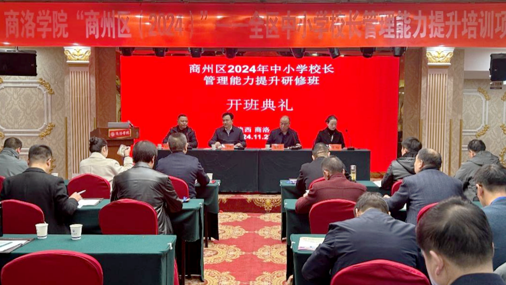 11月23日上午,由我校承辦的商州區(qū)2024年中小學(xué)校長(zhǎng)管理能力提升研修班開班儀式在商洛市國(guó)際會(huì)議中心三樓報(bào)告廳隆重舉行。商州區(qū)人民政府副區(qū)長(zhǎng)王衛(wèi)平,商州區(qū)教育和體育局局長(zhǎng)張鋒山、副局長(zhǎng)周楠以及全區(qū)80余位中小學(xué)校長(zhǎng)參加了本次活動(dòng)。開班儀式由學(xué)校繼續(xù)教育學(xué)院院長(zhǎng)付軍昌主持。
