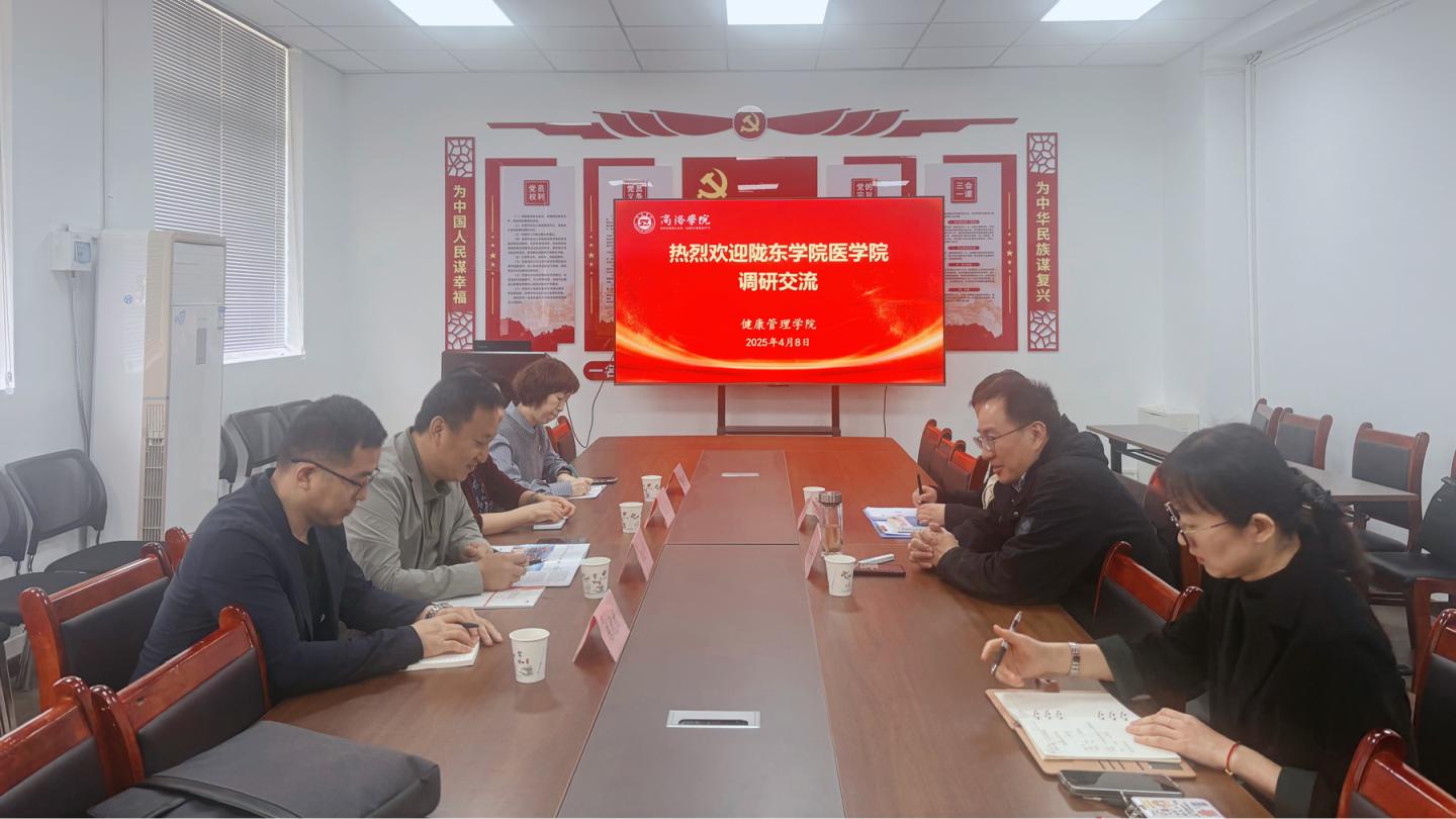 4月8日,隴東學院醫(yī)學院院長周進軍一行來我校健康管理學院開展校際交流。雙方圍繞人才培養(yǎng)、專業(yè)建設(shè)、實驗室建設(shè)等議題開展了座談交流。
