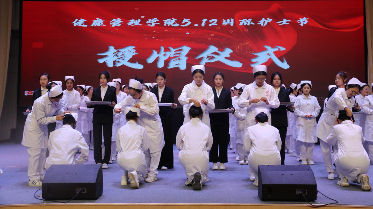 5月12日晚,健康管理學(xué)院在大學(xué)生活動(dòng)中心舉辦了“傳承天使使命,綻放青春風(fēng)采”授帽儀式暨文藝晚會(huì)。活動(dòng)在莊重的護(hù)士授帽儀式中拉開帷幕,護(hù)理學(xué)專業(yè)教師身著潔白的護(hù)士服,為學(xué)生們戴上象征責(zé)任與使命的護(hù)士帽,大家莊嚴(yán)宣誓,表達(dá)了對(duì)護(hù)理事業(yè)的熱愛與堅(jiān)守。