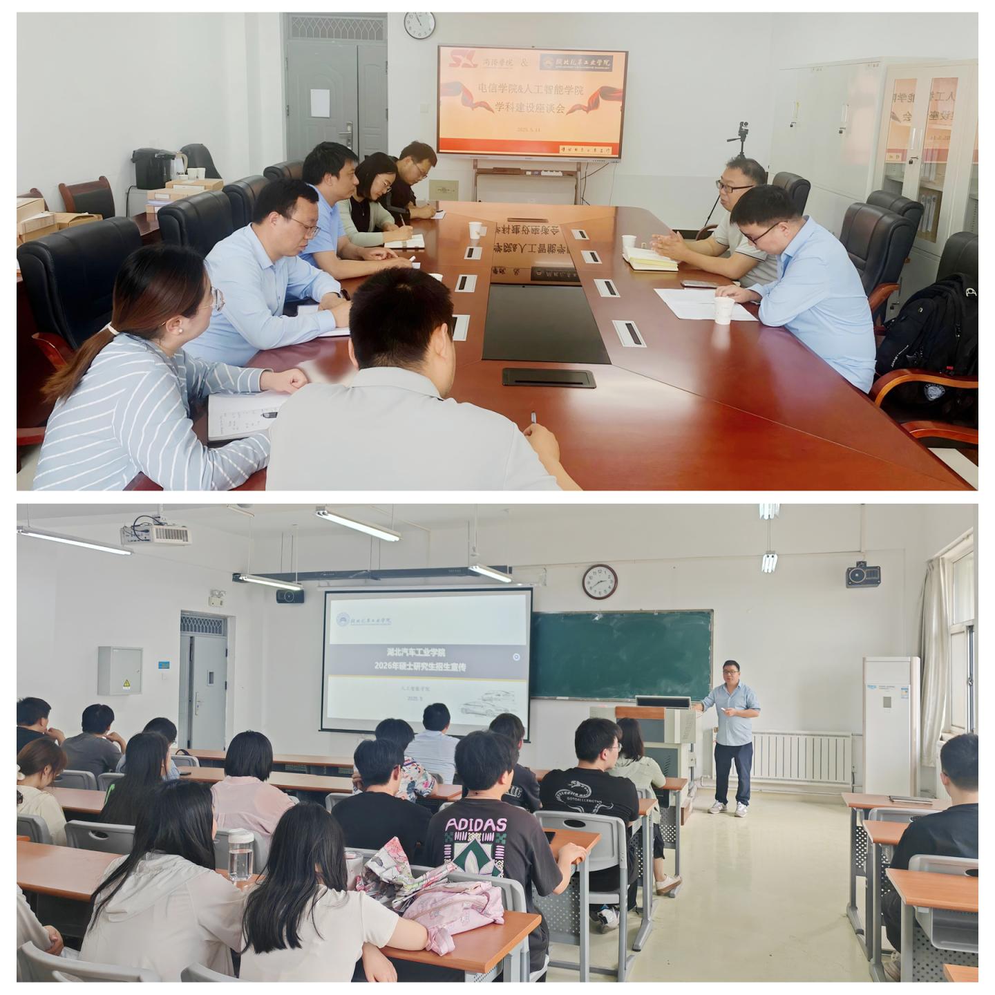 5月14日,湖北汽車工業(yè)學(xué)院人工智能學(xué)院副院長周原一行來訪電信學(xué)院,開展學(xué)科建設(shè)交流及碩士研究生招生宣講活動。電子信息與電氣工程學(xué)院黨委書記袁訓(xùn)鋒、院長陳垚、副院長李亞文及教師代表參與座談。