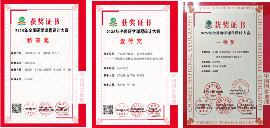 2025 年5月,在“九州杯”全國研學(xué)課程設(shè)計(jì)大賽中,地理專業(yè)許小明教師指導(dǎo)的地理科學(xué)專業(yè)團(tuán)隊(duì)(冀延哲、王宇航、趙滕甲、孫詩博、李陽)表現(xiàn)突出 ,團(tuán)隊(duì)共同完成的《走進(jìn)兩漢三國,解碼自然天書》的研學(xué)課程設(shè)計(jì),從 2000 多項(xiàng)參賽作品中脫穎而出,一舉奪得成果組特等獎(jiǎng)。