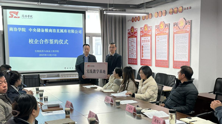12月15日,生物學院與中央儲備糧商洛直屬庫有限公司共建實踐教學與勞動教育實踐基地授牌儀式在商洛學院舉行。商洛學院生物醫(yī)藥與食品工程學院院長趙永平、副院長梁旭華,中央儲備糧商洛直屬庫有限公司總經理王衛(wèi)、副總經理姜昕、李婷,商洛市糧油質量檢驗所實驗室負責人張小婷出席會議。生物學院糧食工程專業(yè)教師代表和中央儲備糧商洛直屬庫有限公司相關科室員工參加會議。