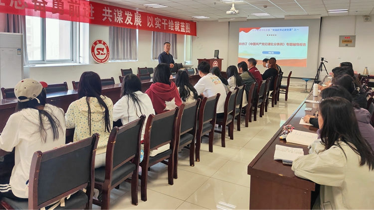 開展一項專題黨課培訓(xùn)。根據(jù)“三會一課”基本的組織生活制度,經(jīng)濟管理學(xué)院黨委在5月份開展“黨組織書記講黨紀學(xué)習(xí)教育主題黨課”活動,旨在進一步規(guī)范組織生活,加強對黨員和入黨積極分子進行黨性教育和黨紀黨規(guī)教育。5月9日,經(jīng)濟管理學(xué)院黨委“黨組織書記講黨課”活動第一課開講,院黨委書記高擴昌作《新修訂<中國共產(chǎn)黨紀律處分條例>專題輔導(dǎo)報告》。接下來,學(xué)院黨委7個支部書記將分別結(jié)合支部特點和工作實際,講一堂黨紀教育黨課,通過黨課,講認識、談體會、提措施,扎實推動黨紀學(xué)習(xí)入腦入心。