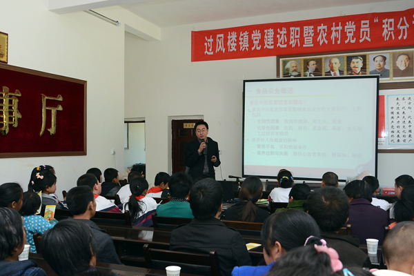 4月11日下午,在商洛市商南縣過風(fēng)樓鎮(zhèn)白玉溝村的黨員活動室里,當(dāng)?shù)卮迕窈土鴺錇承W(xué)師生共100余人聽取了我校專家郭耀東博士所作的食品安全知識科普講座,并領(lǐng)到了免費(fèi)的科普書籍與宣傳資料。這是商洛市與我校聯(lián)合舉辦的“食品安全科普進(jìn)校園、進(jìn)社區(qū)”系列活動的一部分。商洛市科協(xié)副主席閔利民、我??蒲刑幪庨L李繼高、生物醫(yī)藥工程系主任王新軍親臨現(xiàn)場并與村民們互動交流
